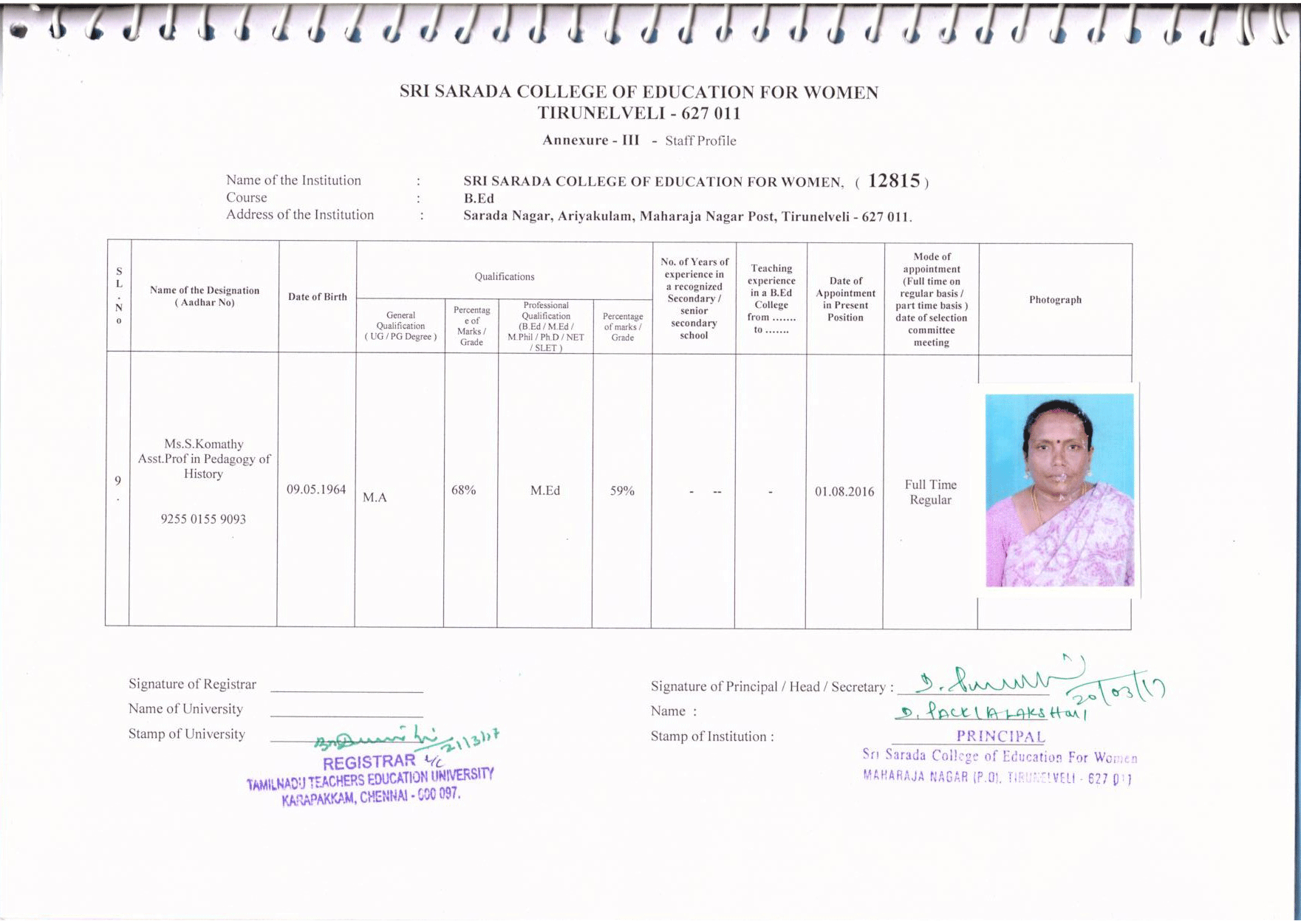 Miss. M. Shenboo | B.A(Eng), M.A(Eng), B.Ed, M.Ed, M.Phil (Edn), P.hd (Edn) |